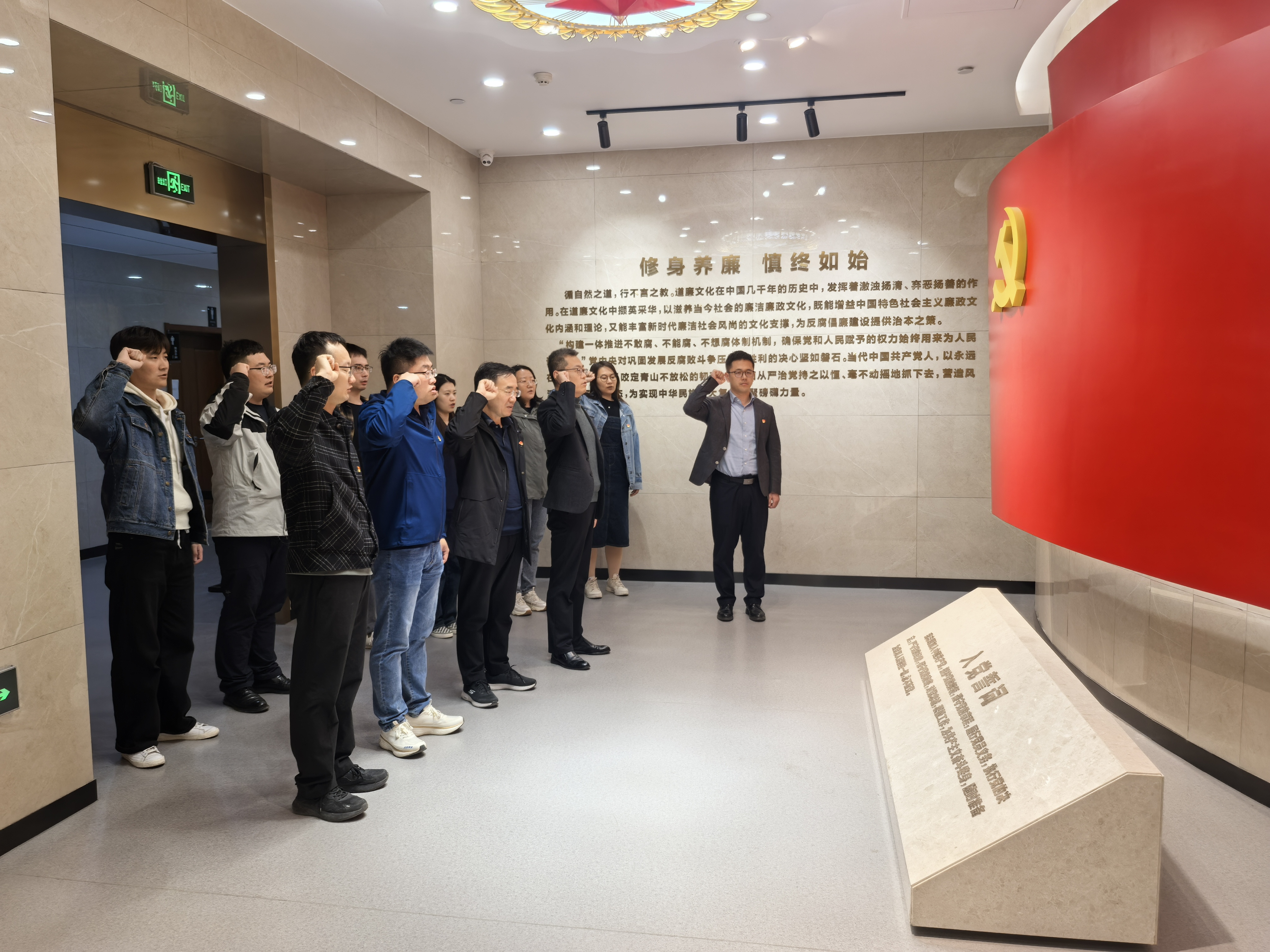 参观最后环节,全体党员面向党旗庄严宣誓。